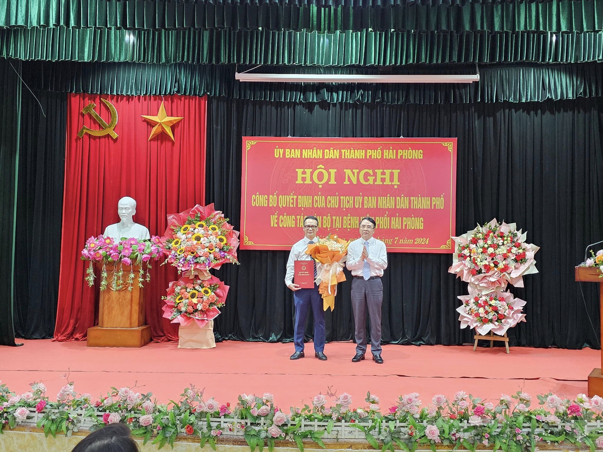 Theo Quyết định của Chủ tịch UBND thành phố, đồng chí Vũ Ngọc Trường – Phó giám đốc Bệnh viện Phổi Hải Phòng được bổ nhiệm giữ chức vụ Giám đốc Bệnh viện Phổi Hải Phòng kể từ 25/7/2024. Thời gian bổ nhiệm 5 năm.