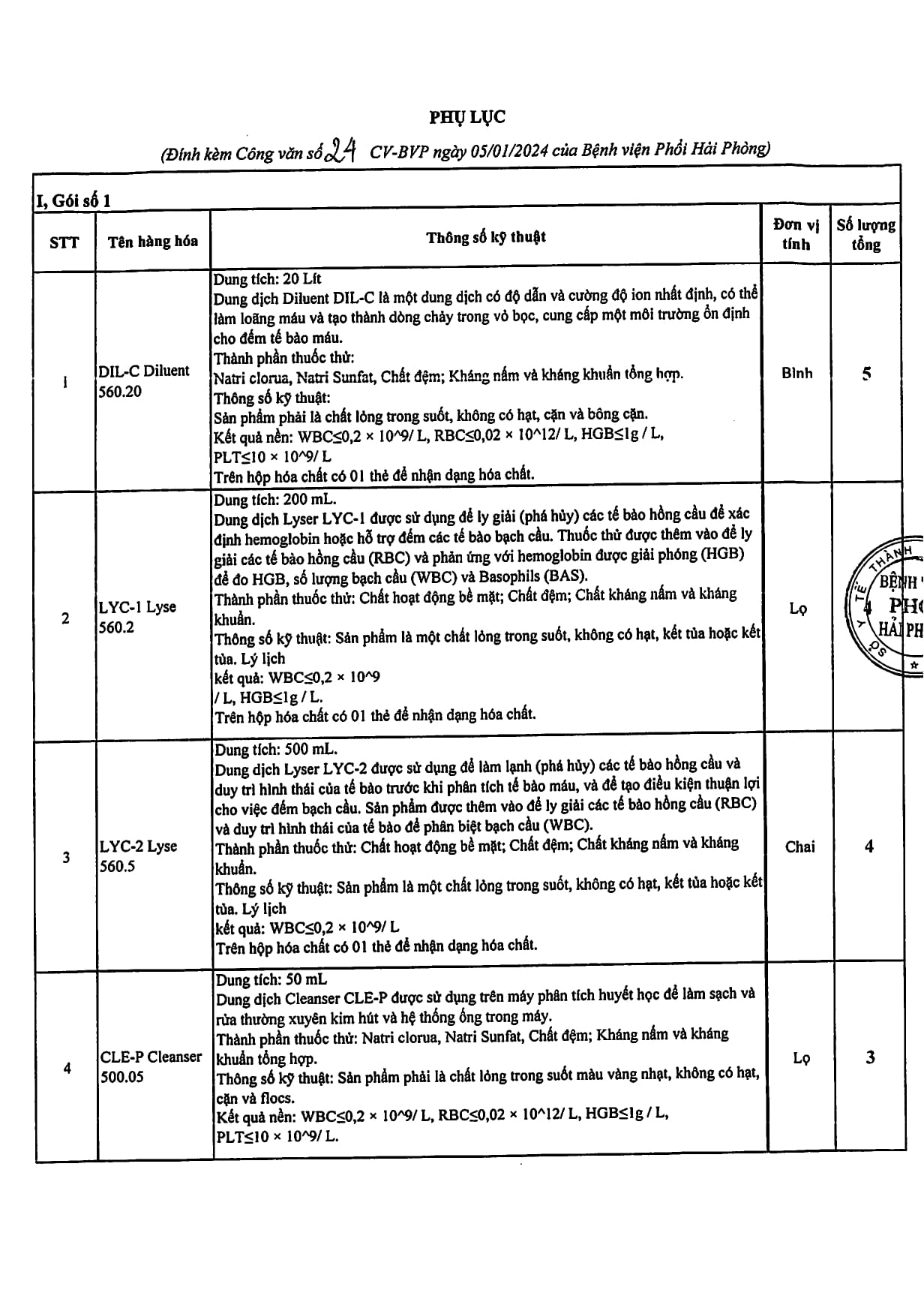THÔNG BÁO MỜI BÁO GIÁ ĐỂ XÂY DỰNG GIÁ GÓI THẦU: “MUA SẮM HÓA CHẤT XÉT NGHIỆM, SINH PHẨM, VẬT TƯ Y TẾ PHỤC VỤ HOẠT ĐỘNG THƯỜNG XUYÊN NĂM 2024 CỦA BỆNH VIỆN PHỔI HẢI PHÒNG”
